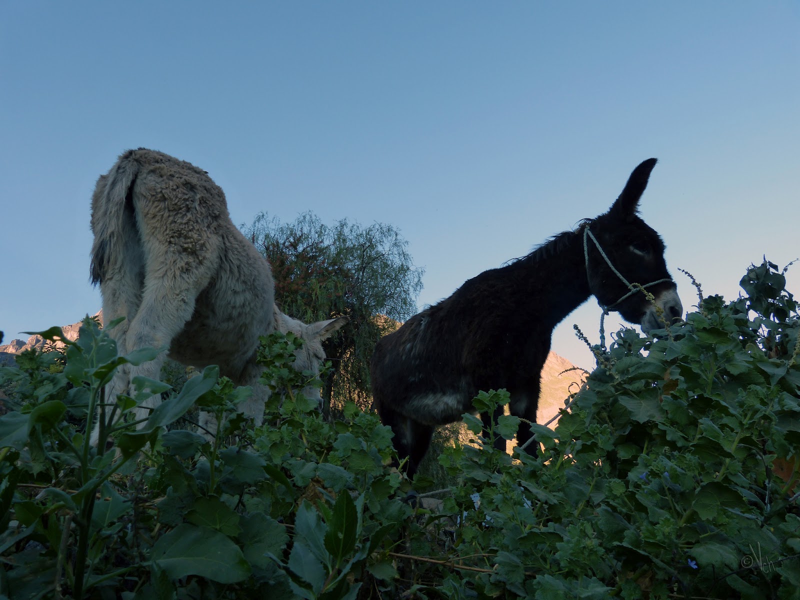 - Todavía están lejos – pensé. Igual me da tiempo de continuar un poco más y esperarla más arriba, pero, como en una escena del final de la película de Drácula de Bram Stoker, cuando el sol se ponía y un carruaje de caballos que cargaba a Drácula a toda velocidad para llegar a su castillo antes de que cayera el sol, las mulas me alcanzaron antes incluso de reanudar la marcha. Me quedé impresionado por la velocidad a la que pasaron por delante de mis narices esas bestias, con carga y personas encima, y con el agravante del empinado y estrecho sendero de tierra y piedras por el que íbamos.