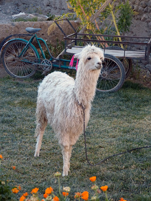 Los guías decidieron ahorrarse la parada del parque nacional de Salinas y Aguada Blanca, argumentando que a esa hora ya era imposible ver los animales, pero una vez más quedaron “con el culo al aire”, cuando al pasar por delante del lugar, un enorme rebaño de alpacas y llamas corrían despavoridas a los márgenes de la carretera…En fin…