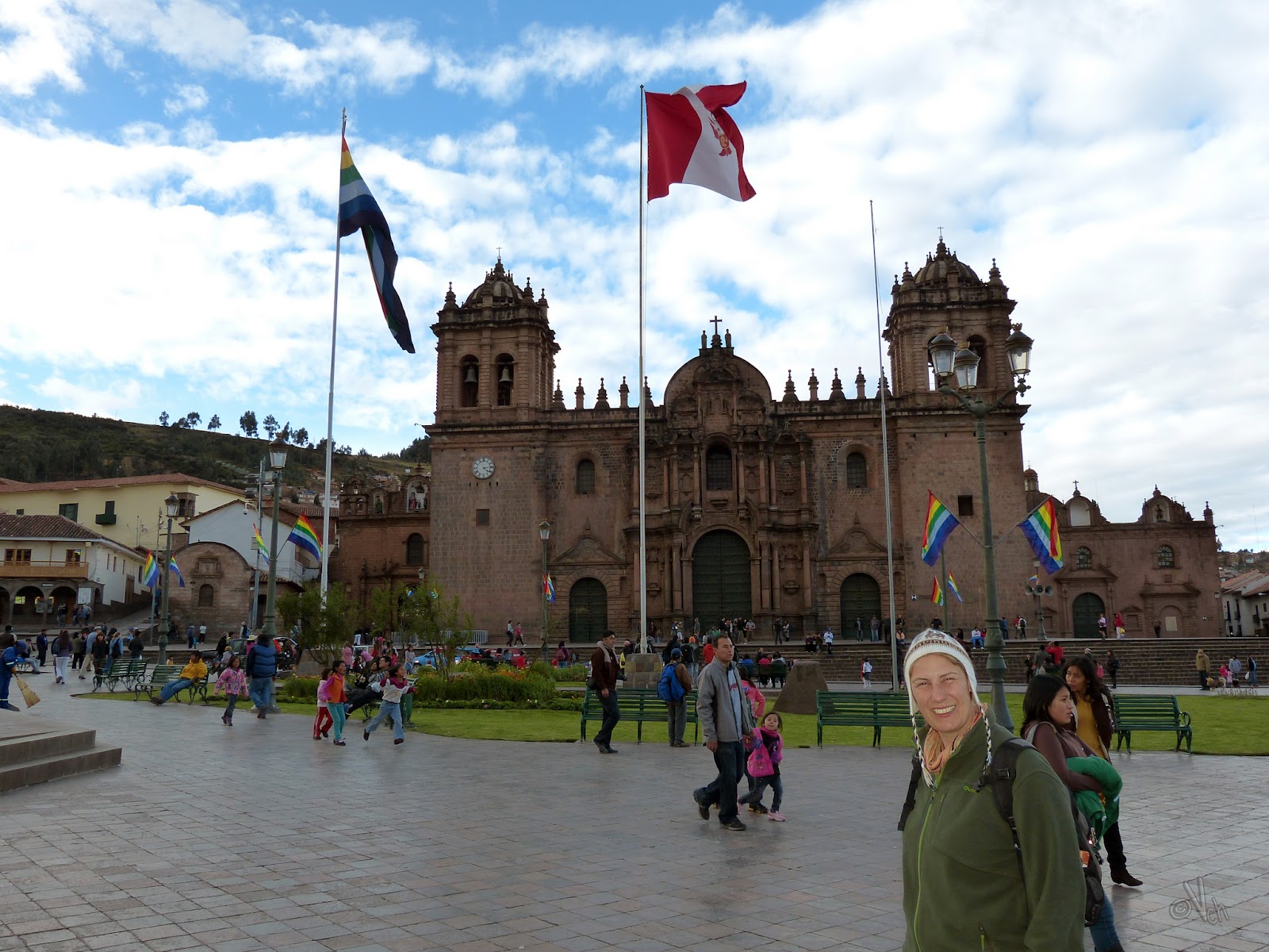 Después de un par de visitas más al “trono”, cuando ya me noté en condiciones de aguantar un poco, decidimos salir a la calle a explorar la nueva ciudad en la que nos encontrábamos, y nos sorprendimos, pues si Arequipa tenía un aire muy familiar con nuestras ciudades canarias, Cuzco, lo tiene aún más, salvo por una peculiaridad que la hace inconfundible, sus calles adoquinadas bordeadas con sus casas de estilo colonial, con techos de tejas y balcones de madera, que se asientan de mitad hacia abajo, sobre antiguos muros de enormes piedras grises, talladas y encajadas ni más ni menos que por los mismísimos Incas.