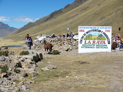 Después del almuerzo, hicimos la siguiente parada en La Raya, un minúsculo pueblo situado a 4.335 metros de altitud, que hace las veces de frontera entre las regiones del Cuzco y la de Puno, en donde realmente no hicimos nada, excepto bajarnos del bus unos minutos, para soportar el viento gélido y pasar frío al lado de unas señoras, que sentadas en sus alfombras, exponían su mercadería esperando a las paradas que hacen los buses turísticos.