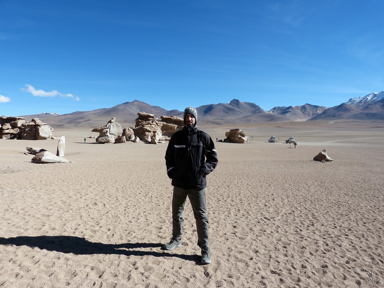 de esa breve parada, fue el inhóspito clima. Sol, fuerte viento que arrastraba